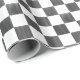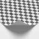 This checkerboard patterned wrapping paper features alternating black painted squares and plain white squares.