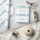 Papier d'enveloppement de Noël de la forêt d'hiver calme et paisible. Dessin d'aquarelle d'une forêt en hiver et en neige, arbres d'hiver avec neige en bleu et vert. Customisez avec vos noms et votre année.
