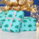 Papier Cadeau Palmier pointilleux en turquoise et en aqua