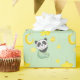 Panda bébé mignonne avec une lune jaune vif et étoiles sur un arrière - plan vert pastel. La couleur Arrière - plan peut être modifiée.