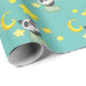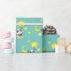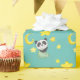 Panda bébé mignonne avec une lune jaune vif et étoiles sur un arrière - plan aqua. La couleur Arrière - plan peut être modifiée.