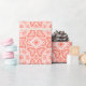 Ce mandala blanc est posé sur une papaye orange ou un arrière - plan saumon. Les couleurs sont claires et chaudes. Partie de la collection Bardh Mandala.