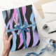 Papier d'emballage élégant avec motif d'impression zèbre abstrait en noir, bleu, violet et rose, fait de ma peinture acrylique originale.