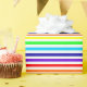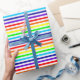Envelopper le papier avec un motif de rayures audacieuses. Les couleurs alternent entre le blanc et les rayures arc-en-ciel (rouge, orange, jaune, vert, bleu, indigo et violet).