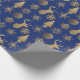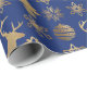 Papier d'enveloppement montré dans une belle couleur or et bleu royal d'arbres de Noël, têtes de rennes et flocons de neige Papier mat montré. Couleur Royal/or. Customisez cet objet ou achetez tel quel.