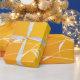 Un joli design doré avec des fleurs dorées qui remontent du bas à droite. Cette conception semble vraiment efficace sur ce papier d'enveloppement