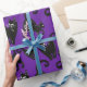 Papier d'emballage en halloween pour chat noir avec un motif de chat tendance sur un arrière - plan violet. Pour plus de designs, veuillez consulter la collection de enveloppes et étiquettes Halloween dans mon magasin.
