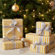 Papier Cadeau Papier à enveloppement rayé jaune et blanc chaud