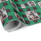Faites votre propre papier d'emballage personnalisé avec 5 de vos meilleures photos de famille. Ce papier cadeau en plaid vert, rouge et noir a des étoiles dans la partie noire du plaid pour compléter les touches rouges de vos photos. Sois la star de tes cadeaux.