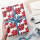 Ce papier d'emballage de Noël est présenté avec une impression festive de poinsettias rouges. Customiser cet objet ou acheter tel quel. Image stock