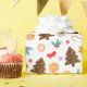 Envelopper le papier avec un motif du Nouvel An, de jolies photos de bonbons, de sucettes et de biscuits, arcs et feuilles en pain d'épice.