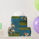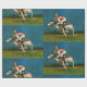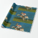 Ce papier d'emballage est illustré avec un lapin qui roule sur un blanc de course.