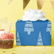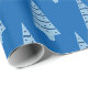 Papier d'emballage cadeau de vacances avec un arrière - plan bleu et un imprimé d'arbres de Noël festifs. Customisez ce papier ou achetez tel quel.