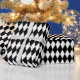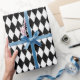 Ce papier d'emballage est présenté avec un motif diamant noir et blanc. Customisez ce papier ou achetez tel quel.