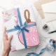 Papier d'emballage rose pâle de noël. Père Noël à gros caractères en rose. Joli papier ceint. Noël rose.