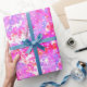 Papier d'emballage à points roses et violets pour cadeaux de fête