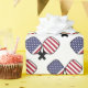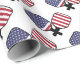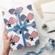 Papier d'emballage à bille à pickleball américain avec deux pagaies à billes à pickleball croisées. Rouge, bleu et blanc.