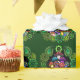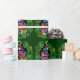 Un rouleau de papier d'emballage avec les champignons psychédéliques colorés entourés par Paisley vert et mandalas verts.