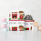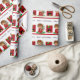 Le papier d'emballage du ęr Noël du bébé comporte le bébé dans des pyjamas rouges par une cheminée avec un bas vert. ©2013 la Chambre de emballage par le xérès Harris