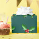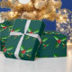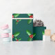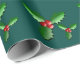 Le papier d'emballage montré avec un arrière - plan à feuillage persistant profond de couleur avec un houx de fête de vacances impriment. Customisez cet article ou l'achetez comme est.