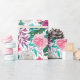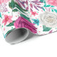 Des roses blanches, roses et bourguignon sur fond blanc constituent le papier cadeau de mariage idéal que votre mariée aimera.