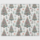 Le délicieux papier d'emballage présente des arbres de Noël joliment décorés, ornés de décorations, de baies et de feuilles, créant une atmosphère de vacances joyeuse, idéale pour les cadeaux.