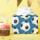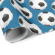 Le papier d'emballage montré avec du ballon de football de sports impriment sur un arrière - plan bleu. Customisez cet article ou l'achetez comme est.