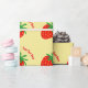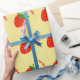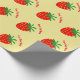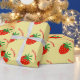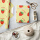 Papier d'emballage fait sur commande de motif rouge mignon de fraise. Enveloppe de cadeau fruitée avec la conception saine d'impression de nourriture. Vacances ou anniversaire drôles de Noël enveloppant des approvisionnements pour des femmes et des enfants des hommes. Ajoutez votre propre nom ou citation humoristique au-dessous de l'icône de fruit. Copie végétalienne/végétarienne de thème. Couleurs jaunes et vertes rouges. En outre gentil pour le cuisinier de chef, le fabricant de gelée ou de confiture, l'amant de fraise, etc.