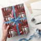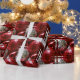 Papier d'emballage élégant avec une collection de boules de Noël rouge et argent scintillants. Un design personnalisable pour personnaliser avec votre propre texte, images et idées. Image créée à l'aide d'une photographie originale et de techniques numériques.