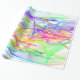 Comme des rubans ondulants en vert et violet néon; des bleus et des aquas électriques; des roses et des rouges chauds; des oranges et des jaunes fluorescents — tous transparents et tordus et se chevauchant dans un motif qui rappelle les faisceaux de lasers multicolores. Ce design époustouflant est un excellent choix pour les anniversaires ou pour une présentation cadeau d'hôte/hôtesse le soir du Nouvel An.