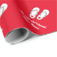 Papier d'emballage rouge tropical de bascules électroniques de Joyeux Noël avec le nom et le Joyeuses Fêtes personnalisés. Conception mignonne de giftwrap de Noël avec les pantoufles ou les sandales tropicales de plage. Vacances drôles enveloppant des approvisionnements pour des femmes et des enfants des hommes. Joyeux Noël ! Couleur personnalisable d'arrière - plan. Disponible dans mat et brillant.