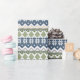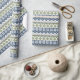Des couches de motifs inspirées des motifs trouvés dans les chandails nordiques créent un merveilleux sentiment hivernal avec des flocons de neige, des montagnes et des arbres à feuillage persistant.