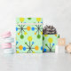 Ce papier d'emballage est recouvert d'un design moderne du milieu du siècle de starbursts atomiques rétro sur un arrière - plan vert.