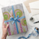 Papier d'emballage Whimsical Flowered. OEuvre multimédia mixte utilisant des peintures à l'aquarelle, des crayons, des cartons et des crayons.