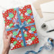 Ce papier d'emballage floral présente un arrière - plan rouge avec des fleurs blanches et bleues dessinées à la main et des feuilles verts, et serait parfait pour un anniversaire de femme ou un baby shower bébé en fleurs. Il s'agit d'un ajout coloré à votre don-don, et il égaye votre journée. Ce motif a été inspiré par des conceptions sur le tissu vintage de sac à dos, et il a une ambiance rétro de pays.