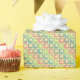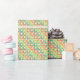 Corail, bleu clair, gris ardoise, et carrés mousseux vert pomme avec des points à l'intérieur décorent ce papier d'emballage jaune ensoleillé dans un motif en diagonale, créant un emballage cadeau amusant et ludique parfait pour toute occasion.