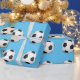 Papier d'enveloppement avec imprimé à bille de football sportif sur un arrière - plan bleu. Customisez cet objet ou achetez tel quel.