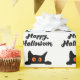 Le "Black Cat Wrapping Paper : Happy Halloween" présente des chats noirs élégants avec du texte "Happy Halloween" éparpillé dans le monde, créant un design festif et éffrayant parfait pour envelopper les cadeaux d'Halloween.