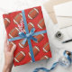 Papier à envelopper sur un arrière - plan de couleur rouge, avec un imprimé de football sportif. Customisez cet objet ou achetez tel quel.