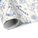 Apportez une touche festive à votre cadeau de vacances avec notre papier d'emballage moderne doodle. Les tons crémeux et les icônes bleues de Noël, dont Père Noël, sucres de canne, colombes et noix de cou, rendent chaque cadeau mémorable.
