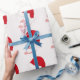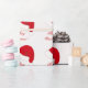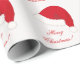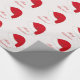 Papier d'emballage de Noël blanc avec chapeau de Père Noël rouge et texte personnalisable rouge - Joyeux Noël!