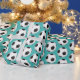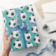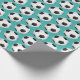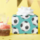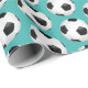 Papier enveloppant représenté avec un imprimé de ballon de football sportif sur un arrière - plan de couleur turquoise aqua. Customisez cet objet ou achetez tel quel.