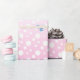 Nouveau Papier à envelopper pour bébé - Pins à couches rose et bleu, adorables agneaux à peluche sur dégradé rose à bleu avec pois blancs - Toutes les occasions papier d'emballage -