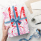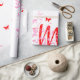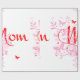 Papier d'emballage élégant pour les cadeaux de maman. Un design graphique d'art floral rose avec des papillons rouges et le mot MOM écrit dans une police de caractères rouge. Donnez à maman son cadeau spécial de fête des mères, cadeau d'anniversaire, cadeau d'anniversaire, cadeau de Noël enveloppé dans ce beau papier d'emballage fait juste pour elle.