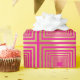 Papier d'emballage cadeau rose chaud et or décoratif et élégant avec des carrés dorés étroitement liés pour produire une illusion 3D captivante.