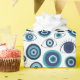 Papier d'emballage grec moderne illustré à la main en bleu et blanc méditerranéen bleu et motif pour oeil.