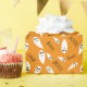 Joli et joyeux tirage à la main Halloween Boo Ghosts motif sur papier d'emballage orange, parfait pour les fêtes d'Halloween, envelopper les cadeaux de saison éffrayante et les faveurs de fête.