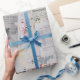 Papier Cadeau Papier d'imprimante blanc sur mur en béton blanc e