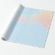 PAPIER CADEAU PAPIER EN LAVAGE BLEU AVEC NUAGES ROSES