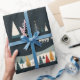 Pourquoi ne présentez-vous pas ce cadeau de Noël / Nouvel An avec un papier d'emballage customisé? Cette conception sombre fournit des illustrations colorées d'arbre avec votre propre message customisé!